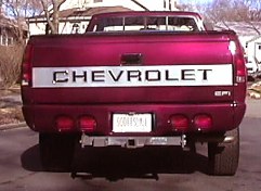 In 1996 the truck was repainted, and a "Chevrolet" embossed emblem was installed on the tailgate (which is typical Silverado trim).
